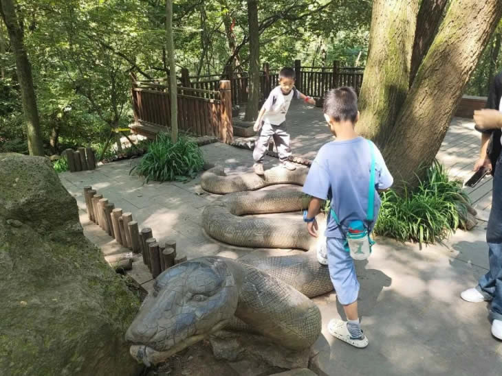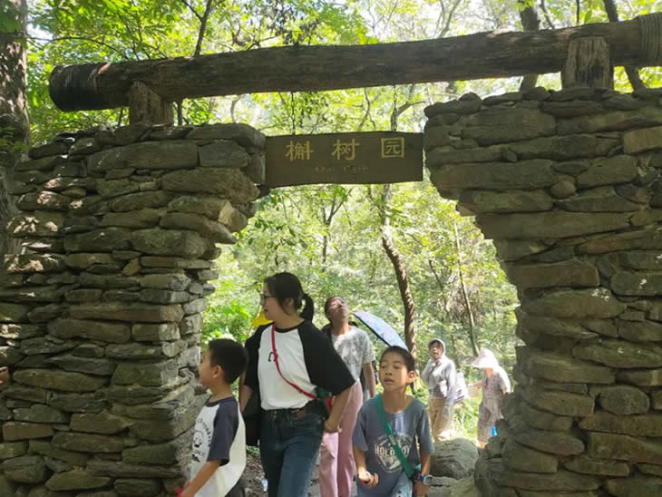 綠樹蔭濃夏日長,行程第一站是鐵山寺國家公園。在導(dǎo)游的講解與陪同下,工匠與家屬步行2小時穿越這處天然氧吧。途中經(jīng)過鐵山寺、孔雀園、蟒蛇澗、石鼓堆等兼具人文氣息與自然美景的林中站點,認(rèn)識了“咬人樹”漆樹、金錢草等植物,在伏案工作之外獲得天然體驗。
