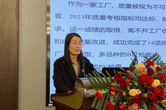會(huì)議伊始,海陵黨支部書記、海陵工廠廠長(zhǎng)助理李靜做出以《踔厲奮發(fā)新征程,終身成長(zhǎng)再起航》為題的海陵藥業(yè)2023年終工作報(bào)告。總結(jié)了海陵人2023年展現(xiàn)出的拼搏精神和奮斗姿態(tài),以及取得的來之不易的成果,更為海陵明確了2024年的努力方向。